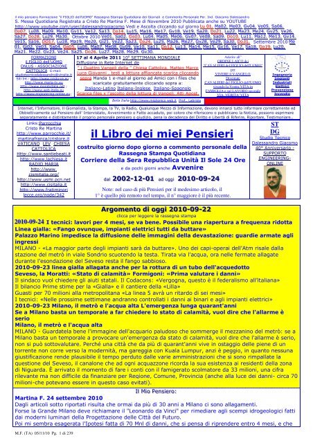 Full text of "Racconti - Volume primo" Due to a planned power outage on Friday, 1/14, between 8am-1pm PST, some services may be impacted. Vito Galluffo passa con Italia Viva di Matteo Renzi? - TrapaniSi - v'e' il buon Di Maio, etereo indefinito indefinibile politicamente, nel quale tanti avevano sperato; - v'e', poi, l'incontrallabile ed incontenibile delirio di onnipotenza di Salvini, blaterante "pieni poteri" e null'altro, anzi tant'altro di nero ed oscuro». «Ed allora: non resta che fare di "Necessitate Virtute". Pietro Stramba-Badiale - YUMPU La psicologa, invece, si rivela una signora gentile e affabile, che nonostante. la brevità dell'incontro - una chiacchierata di sì e no tre quarti d'ora - ci lascia. una buona impressione di professionalità ben celata dietro l'apparente. banalità delle domande che ci fa. Certo l'inizio è un po' spiazzante: «Ma lei è